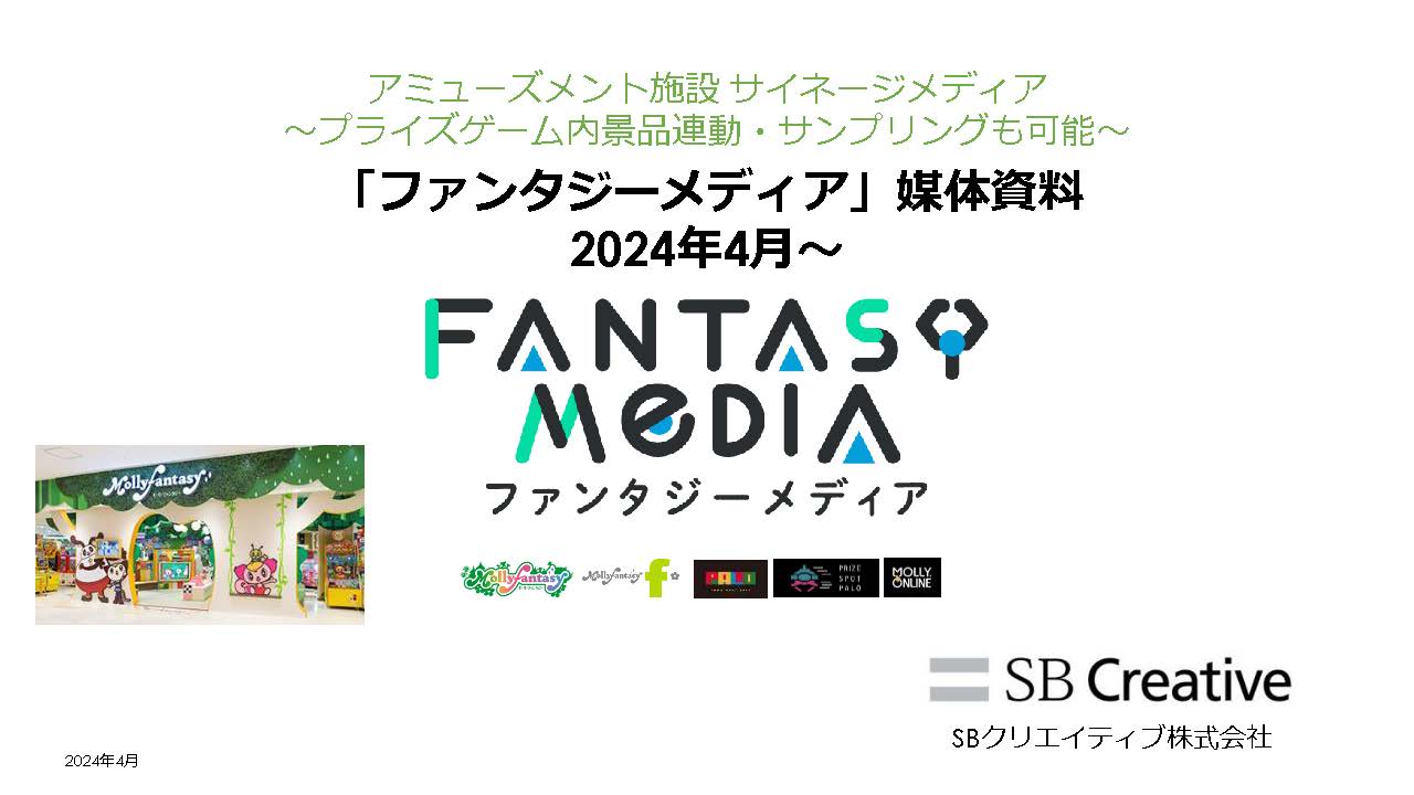 アミューズメント施設 サイネージメディア ~プライズゲーム内景品連動・サンプリングも可能~ 「ファンタジーメディア」媒体資料